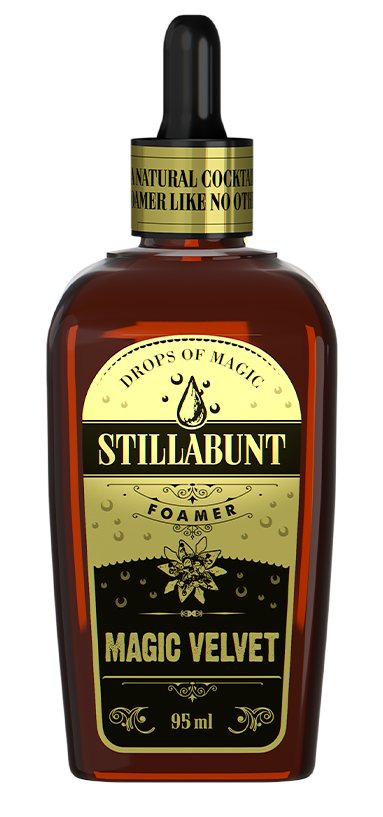 Magic Velvet Foamer je první produkt, který vznikl na základě filozofie Stillabunt. Revoluční, zcela veganský a bezalkoholový přípravek pro více než 600 koktejlů. Magic Velvet zcela nahrazuje použití vaječného bílku, je mnohem levnější a naprosto bezpečný.